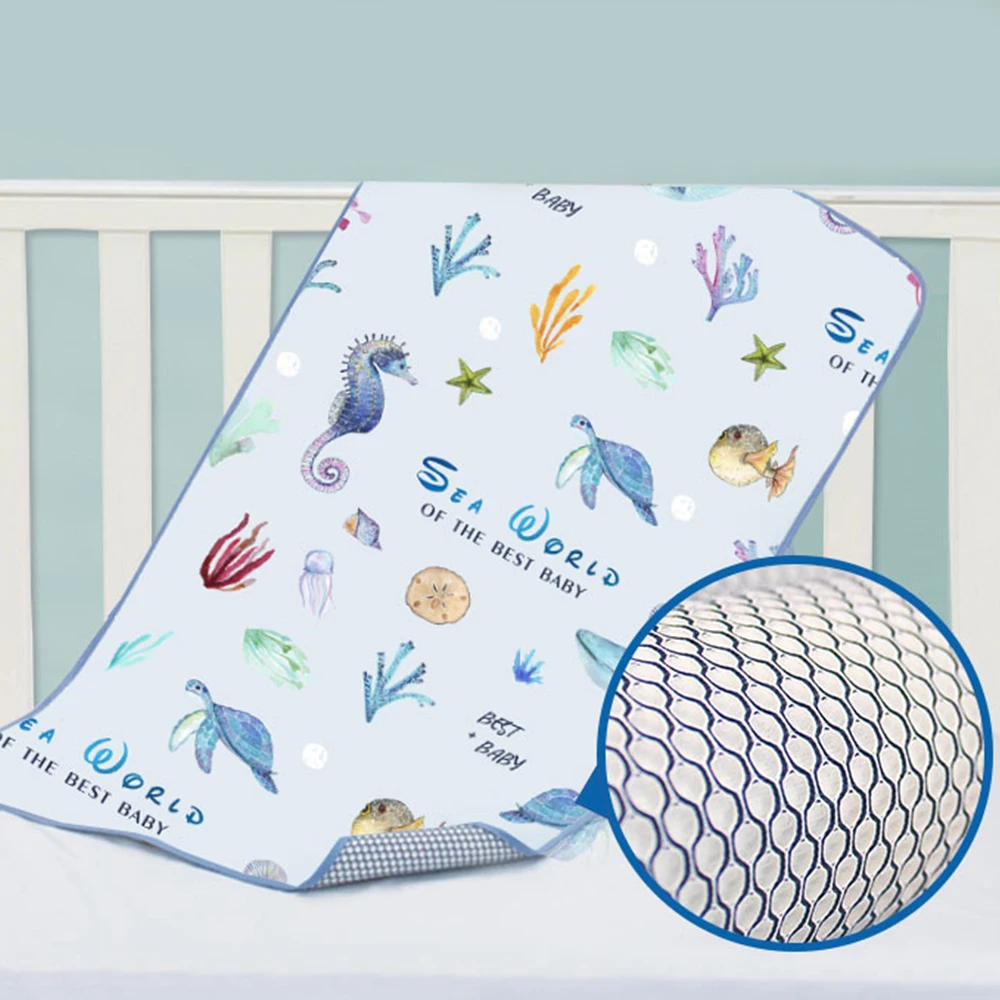 | Newborn Waterproof Diaper Pad Summer Washable Ice Silk Large Baby Mattress Breathable Cartoon Print Pad Mat Set with Pillow J71 |