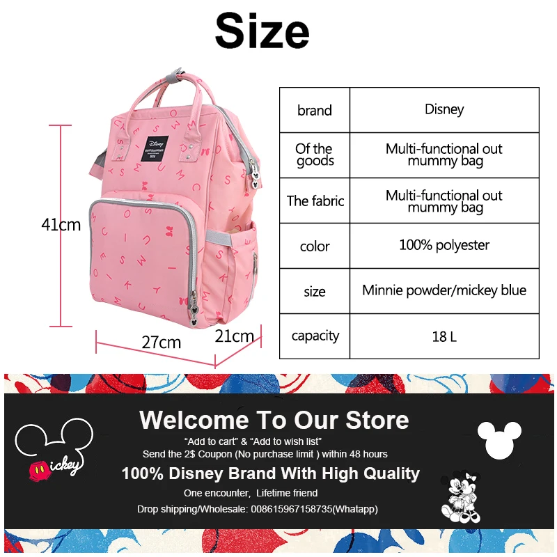 You are looking for "Disney Cute Diaper Bags Maternity Nappy Wet Bag Large Capacity Mummy Mom Backpack Baby Care Handbag Travel Nursing Organizer" , this product is ready to be purchased. don't forget to bookmark this site, so you can come back here anytime. Get special discount by shopping on aliexpress site, because new buyers will get a decent discount coupon. To buy this product, please click the buy link bellow.