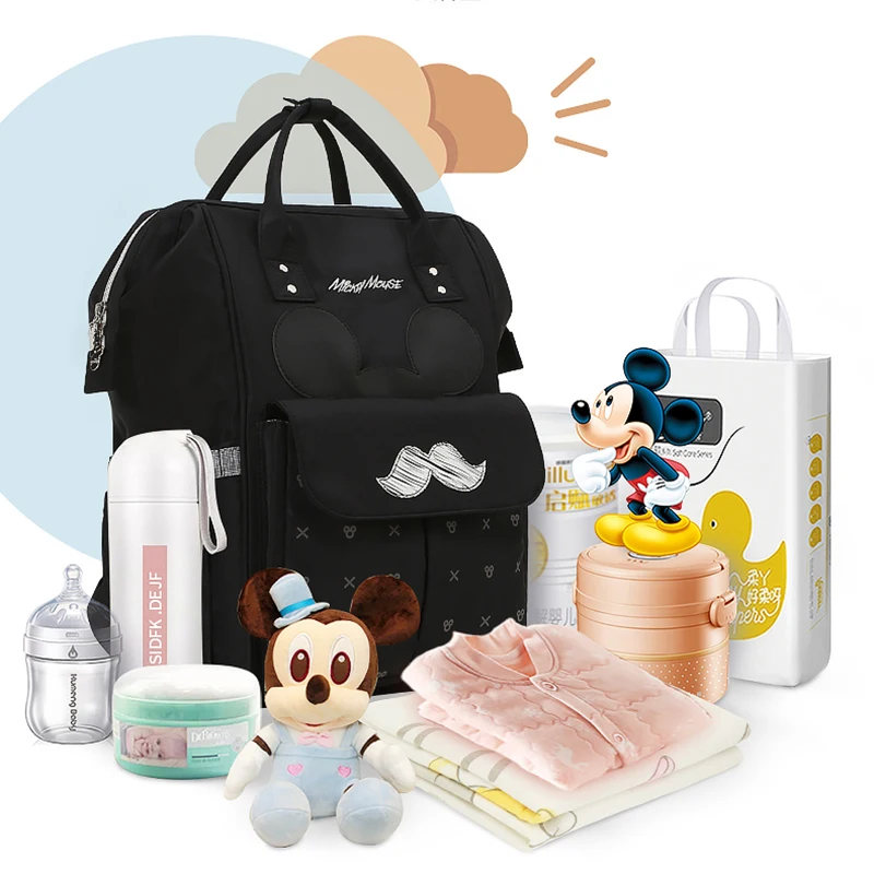| Disney Diaper Bags USB Wet Bag Warm Cute Mummy Maternity Nappy Diaper Stroller Insulation Travel Backpack Mickey Minnie Pram |