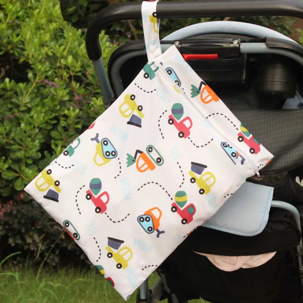| New Waterproof Reusable Wet Bag Printed Pocket Nappy Bags PUL Travel Wet Dry Bags Mini Size 30*40cm Diaper Bag |