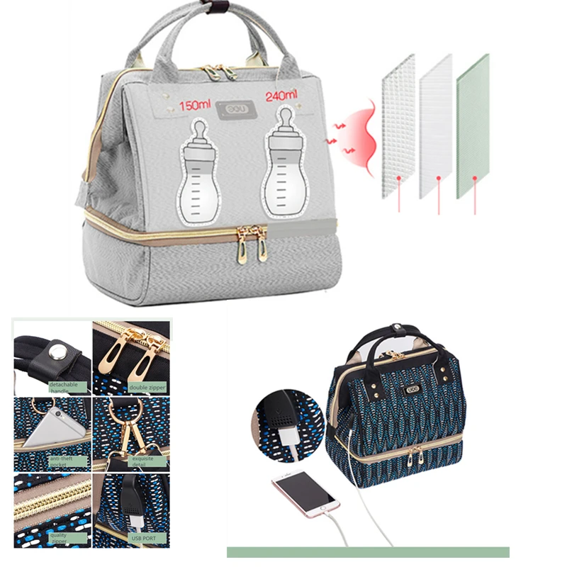 | Mom Backpack Fashion Baby Diaper Bag Mother Maternity Bag Heat Preservation Newborns Feeding Bottle Storage Bag For Stroller |